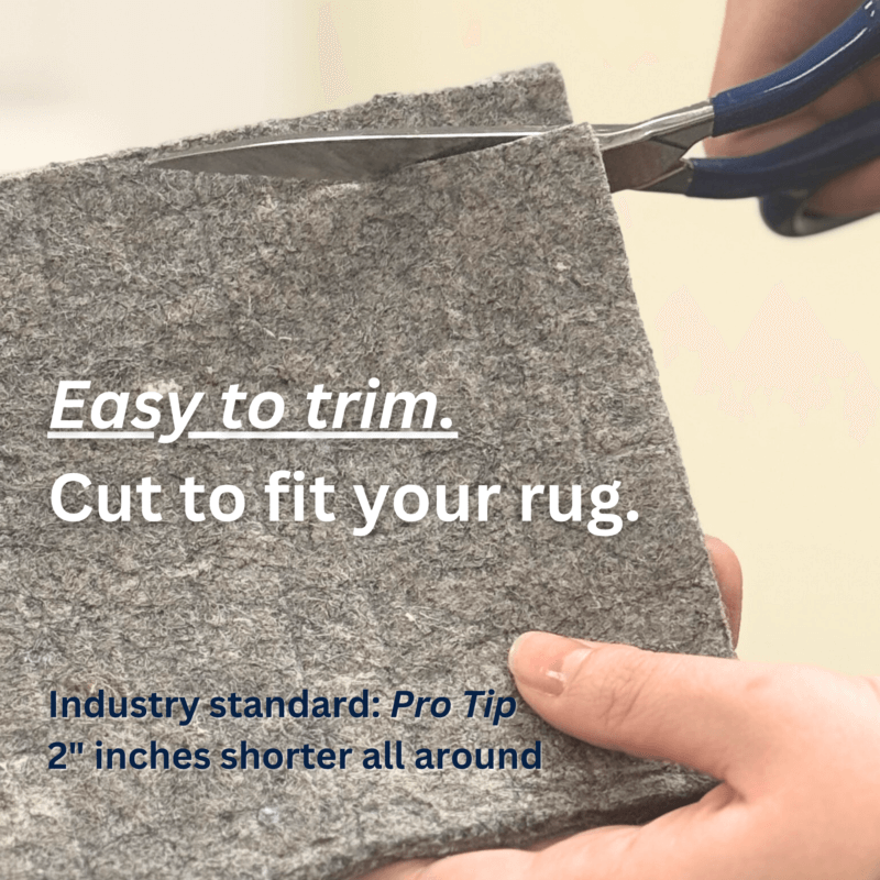 - Type in size you need below. Industry standard for rug pad: 2″ away from all rug edges ( i.e. 5’x 4′ area rug = 4’8″x 3’8″ rug pad)