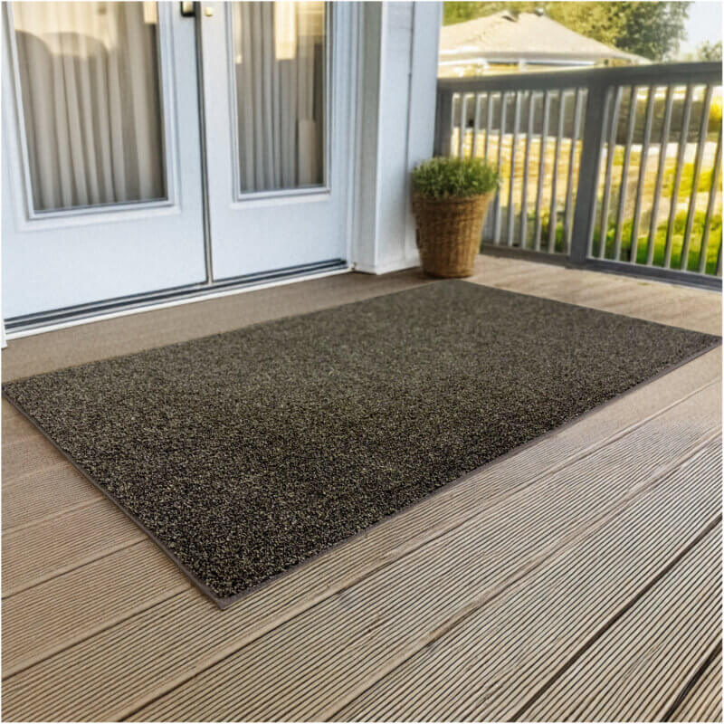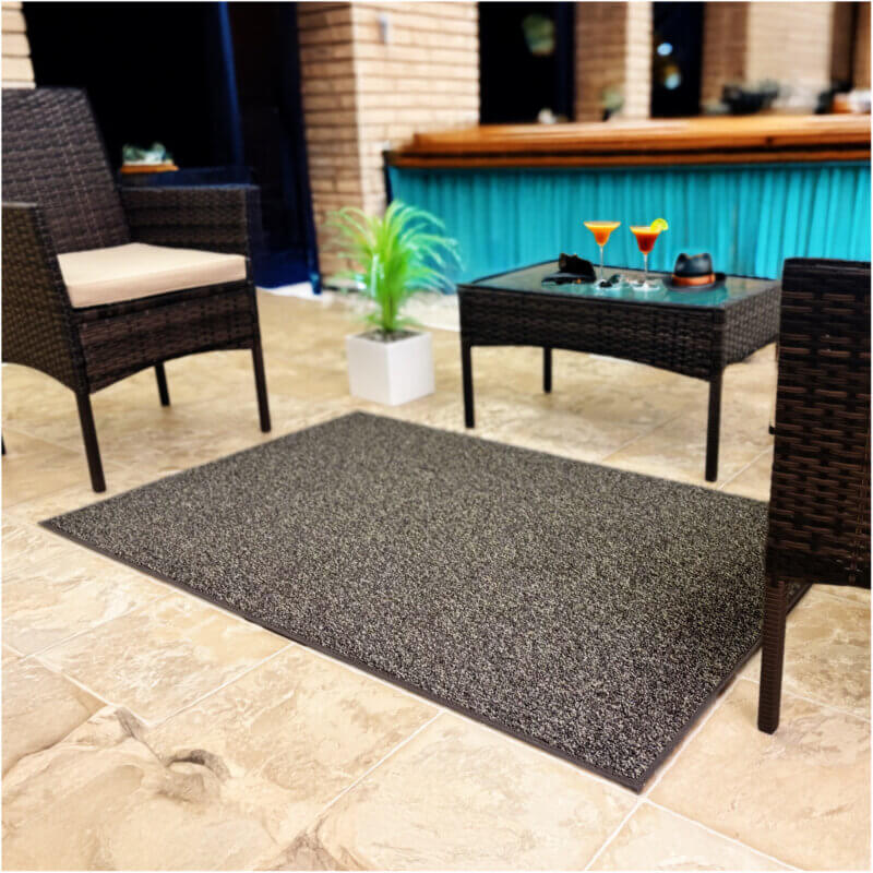 Good Earth Brown Indoor-Outdoor Premium Artificial Grass Turf | 3/8” Thick 20 oz Good Earth Indoor / Outdoor Turf Area Rug With Action Back Backing are useful and great accessories for Decks, Patio’s & Gazebo’s to Pools, Docks & Boats, under party, event & wedding tents and canopies. Good Earth Indoor-Outdoor Premium Artificial Grass Turf is also great for camping, picnics and other outdoor recreational purposes. Good Earth Indoor-Outdoor Premium Artificial Grass Turf is Easy to clean – just hose off and dry! Good Earth Indoor-Outdoor Premium Artificial Grass Turf is made of 100% UV Synthetic Fiber fiber and come with Action Back backing. Synthetic Fiber’s advantages are its strength, colorfastness and comfort, stain, mildew, abrasion and sunlight resistance. Each Good Earth Indoor-Outdoor Premium Artificial Grass Turf comes with a Premium Soft Fabric bound edge that nicely finishes your rug and prevent fraying. Made in the U.S.A. *