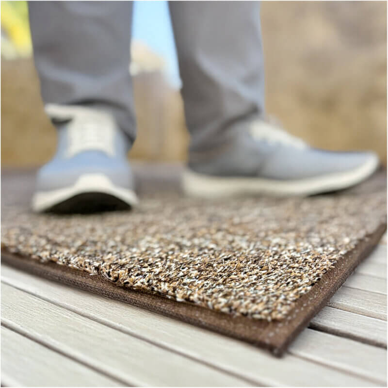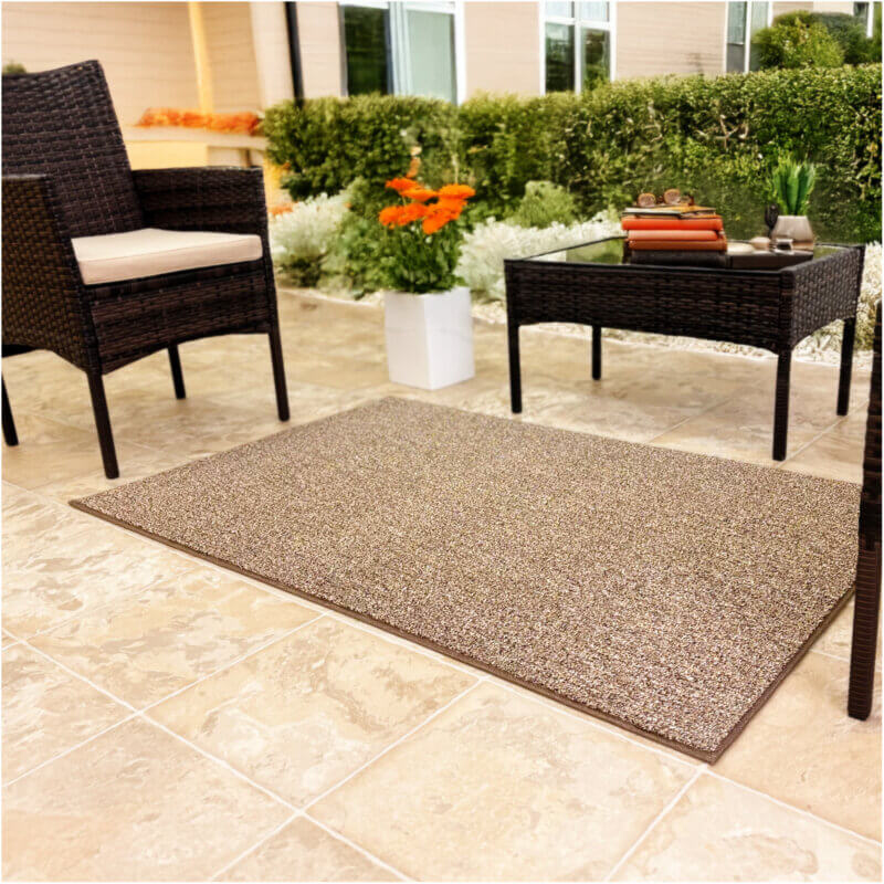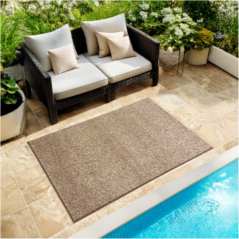 Sandstone Indoor-Outdoor Ultra Artificial Grass Turf | 3/8” Thick, 20 oz Sandstone Indoor / Outdoor Turf Area Rug With Action Back Backing are useful and great accessories for Decks, Patio & Gazebo to Pools, Docks & Boats, under party, event & wedding tents and canopies. Sandstone Indoor-Outdoor Premium Artificial Grass Turf is also great for camping, picnics, and other outdoor recreational purposes. Sandstone Indoor-Outdoor Premium Artificial Grass Turf is Easy to clean – just hose off and dry!
